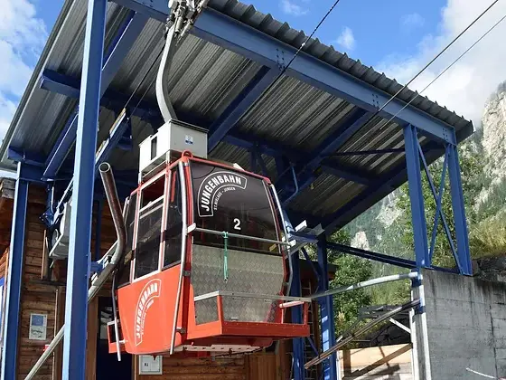 Die Talstation der Luftseilbahn befindet sich in der Nähe des Bahnhofs.